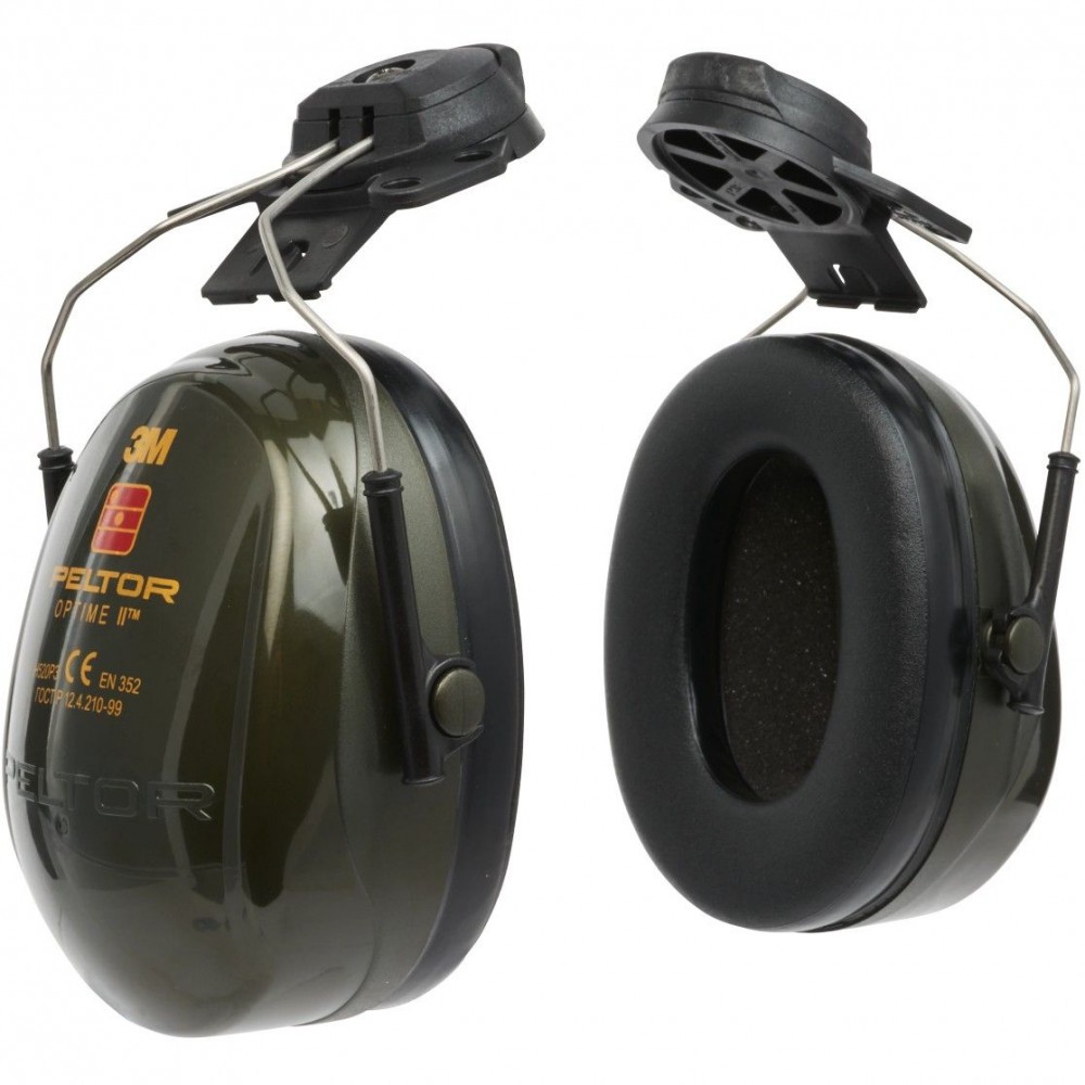 Przeciwhałasowe nauszniki Optime II w wersji do mocowania na hełm Peltor. W zestawie znajdują się uchwyty P3E/2, które umożliwiają mocowanie tych ochronników. Jest to częsty wybór, który pozwala w jednej chwili chronić zarówno słuch, jak i głowę.