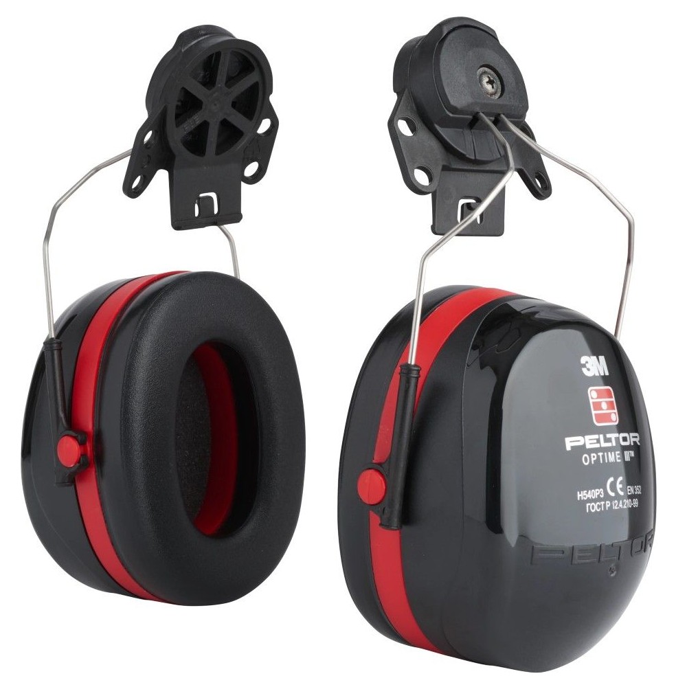 Przeciwhałasowe nauszniki Optime III w wersji do mocowania na hełm Peltor. W zestawie znajdują się uchwyty P3E/2, które umożliwiają mocowanie tych ochronników. Jest to częsty wybór, który pozwala w jednej chwili chronić zarówno słuch, jak i głowę.