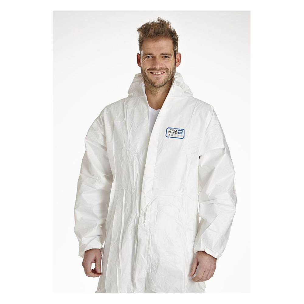 Kombinezon jednoczęściowy ProSafe PS2 spełnia normy EN 13982-1, EN 14126, EN 13034, EN 1073-2, EN 1149-5, EN 369/ norma wycofana i zastąpiona przez PN-EN ISO 6529: 2002. KAT III, TYP 5B, TYP 6B. Jednorazowa antystatyczna odzież ochronna. Wykonana z miękkiej , lekkiej białej tkaniny mikroporowatej. Konstrukcja kombinezonu: brak szwów na barkach, podwójna klapa wewnętrzna i zewnętrzna, bardzo szerokie szwy zapewniające lepszą odporność na naprężenia, bardzo dobra odporność na rozdarcia i penetrację przez ciecz. Większa swoboda ruchu dzięki modelowi szeroko pasowanemu pod pachami, kaptur trzyczęściowy ściągany gumką, elastyczne ściągacze przy nadgarstkach i w pasie, trzyczęściowy diamentowy klin w kroku odporny na rozdarcia, główne zapięcie na zamek kryte podwójną plisą. Nie zawiera silikonu ani lateksu. Kombinezon jest jednoczęściowy, chroni całe ciało, stanowi znakomitą barierę przed pyłami, ciekłymi chemikaliami, rozpryskami. Pozwala na szczelne połączenie ze sprzętem dodatkowym takim jak okulary, buty, wizjery oraz sprzętem ochrony układu oddechowego. Odzież tego typu znajduje zastosowanie: lakiernie, przemysł atomowy, przemył chemiczno- petrochemicznym, farmaceutyczny- laboratoria, przemysł elektroniczny, motoryzacyjny, konserwacja, malowanie przemysłowe, czyszczenie zanieczyszczonych środowisk, służby ratownicze, prace przy azbeście.