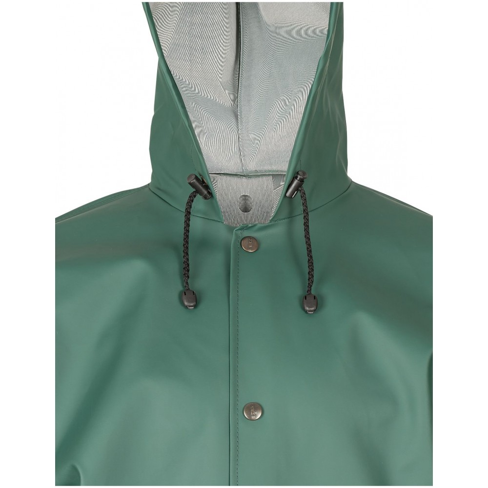 Podstawowy model kurtki sprawdzający się w niesprzyjających warunkach pogodowych, skutecznie chroniąc przed wiatrem i deszczem. Produkt zaprojektowano z myślą o zwiększeniu odporności na uszkodzenia mechaniczne, dlatego też został wykonany techniką obustronnego zgrzewania, co skutecznie zwiększa wytrzymałość szwów. Użytkownicy docenią zapinanie na metalowe napy oraz kaptur ze sznurkiem do regulacji.